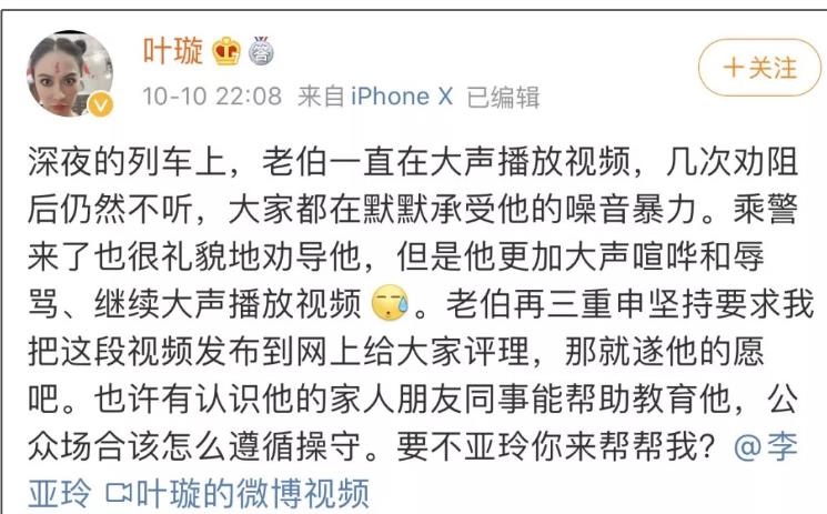 叶璇在深夜乘坐高铁时,一位大爷视频外放,叶璇劝解结果被辱骂神经病。