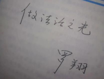 不管是你听课的时候,还是在买书的时候,如果你找罗翔签名,他基本都会写同一句话:“做法治之光。”