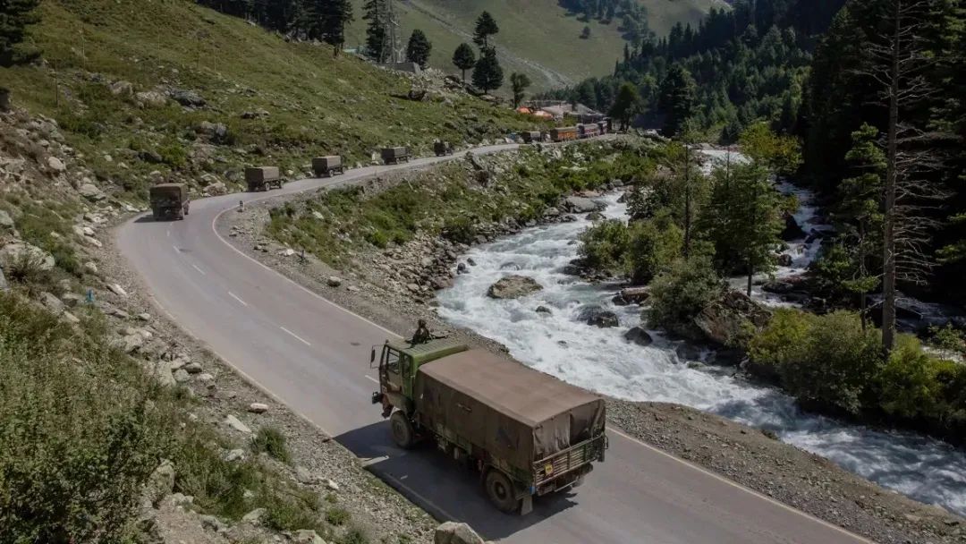 2020年9月,一支印度军队在与中国接壤的公路上驶向拉达克的列城。2020至2023年间中印边境局势十分紧张,直到2024年10月喀山金砖峰会领导人会晤后才重回正轨。