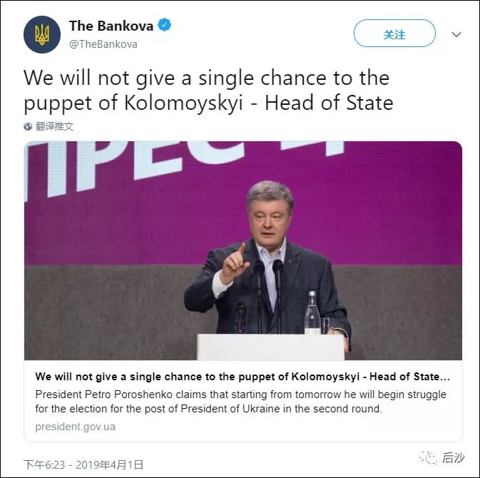 波罗申科则一口咬定他的对手是犹太人傀儡,他在3月31日发推称: “我们不会给科洛莫伊斯基的傀儡一点机会——国家元首”