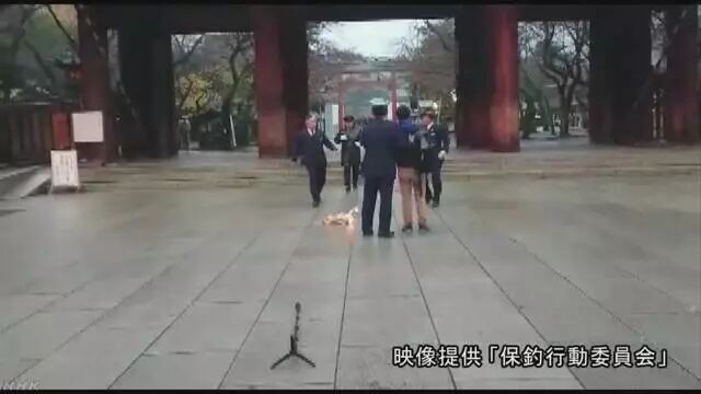 去年12月12日,一名来自香港的男子在位于东京的靖国神社门前纵火焚烧纸制品,后被紧急增援的日本警察所拘捕。