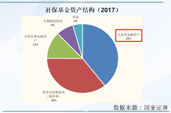 除此之外,社保基金持有的交易类金融资产占比达到39%,所谓的交易性金融资产就是短期投资,其目的就是短期进行买卖以获取价差利润的。