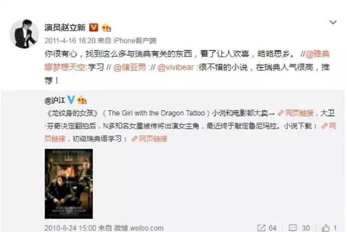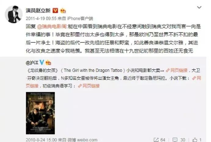其实,虽然赵立新生在中国、长在中国,但他现在已经是瑞典人了,而且从他的微博中非常热爱瑞典。