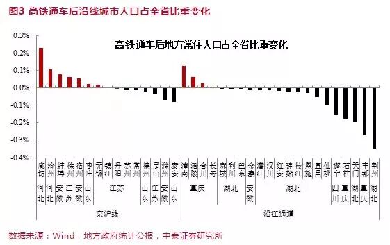 这个判断会打破很多传统的认知。包括高铁,一度也造成了让中小城市迎来春天的错觉,然而根据经济学家李迅雷的研究,高铁并没有对沿线城市产生一致性带动影响,相反它和人口积聚呈现出负相关。比如沿江高铁通道沿线,70%的城市出现了常住人口下降。