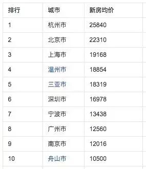 2010年杭州房价继续大幅上行,这一年对杭州来说是无比荣耀的一年,为什么呢?来看一下当年全国房价的排行吧: