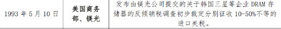 1993年,美国商务部直接判定韩国三星等DRAM存储器存在倾销行为,必须征收反倾销关税。