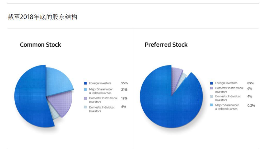 这张图非常有意思,仔细看的话就知道三星公司的55%股权在国外资本手上,而国内资本只有25%(19%+6%)。而这55%的股份其中大部分都是美资,是华尔街在控股三星电子,比如花旗银行和摩根斯坦利,换言之,今天的三星其实也是国家队,只不过国家换成美国罢了。