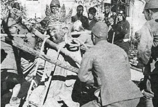 八国联军侵华时,日军司令部所在地北海静心斋,便曾遭到日军疯狂洗劫,万佛楼内大小万尊金佛无一幸免。在全面侵华前,日本人便打着考古、探险的名义,通过盗掘中国古墓和其他历史遗迹,大量掠夺有价值文物。