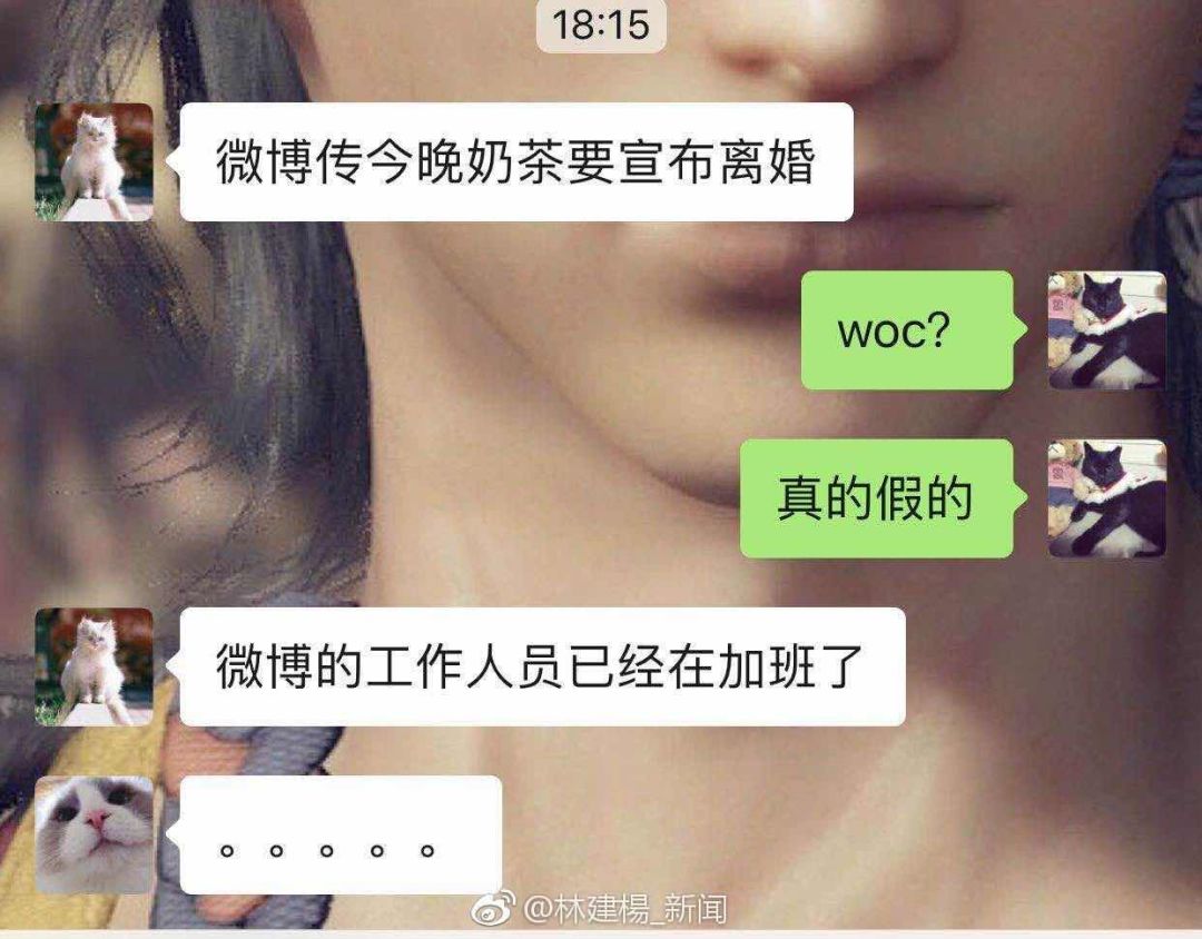今晚,一则“奶茶妹妹将在微博宣布离婚”的消息,被广为传播,搞的吃瓜群众们纷纷坐在微博前等候,广告商都不敢今天跟奶茶抢头条了。