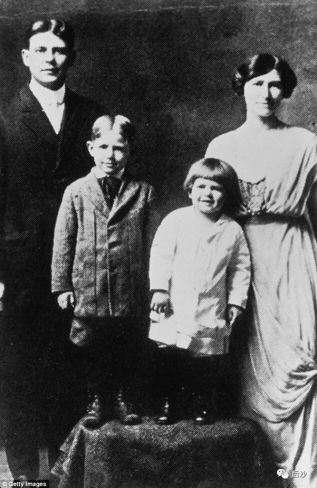 里根1911年生于伊利诺伊州坦皮科城,家境贫寒,一家四口生活拮据。这是他家最早的一家全家福,靠近母亲内莉的是罗纳德.里根,高一点的是他哥哥尼尔。