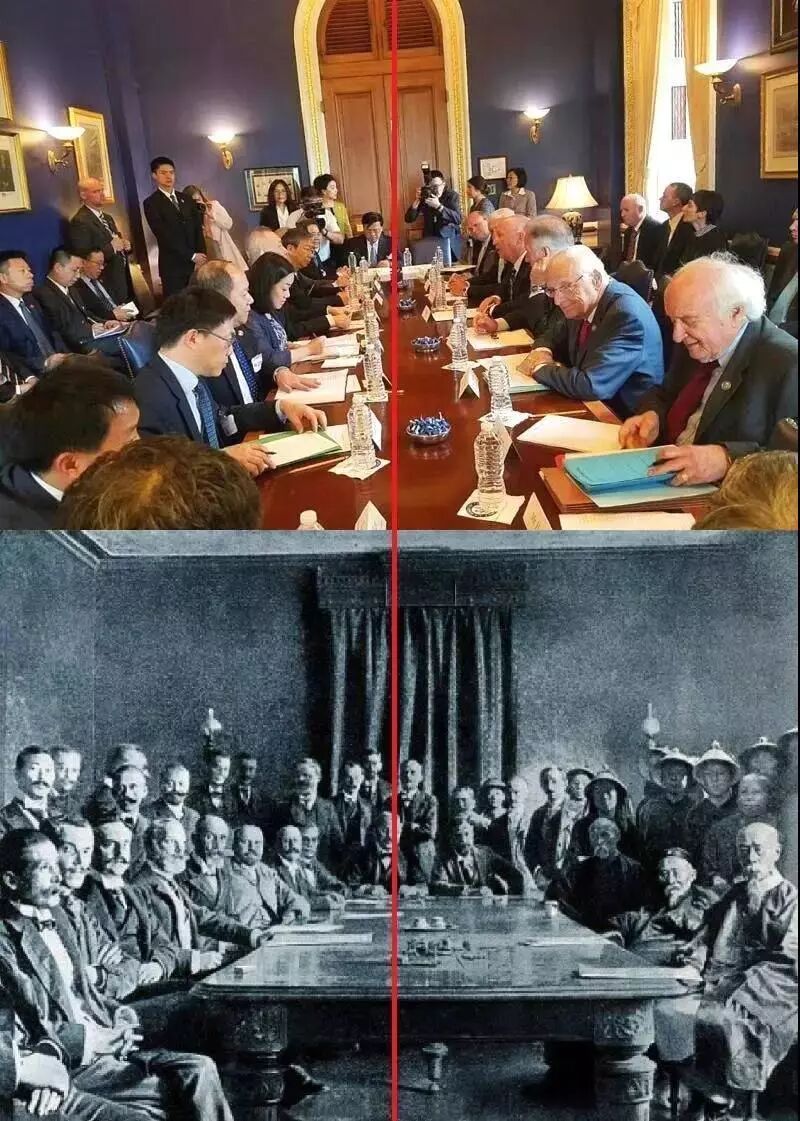 很多人可能会说,这都是陈年旧事了,历史总是要放下的。可是,如果我们抛开时代的隔阂,仔细想想美加等国近些年在各种国际会议和条约协定上对中国的“苛刻”要求,也不难品觉出这似曾相识的“丑态”。