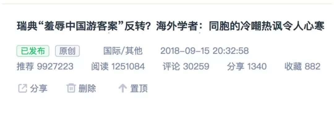 这让笔者想起了2018年的瑞典辱华事件,当时笔者写了一篇题目叫《“比起瑞典警察的暴力执法,更让人心寒的是同胞的冷嘲热讽”》的文章,写该文章的时候,瑞典方面依旧坚持拒绝道歉,而网络上却刮起了所谓的“反转风”,甚至有不少人站出来给瑞典将人丢弃坟地的无礼行为找“合理性”,更有甚者开始攻击大使馆,质疑自己的国家“太霸道”。