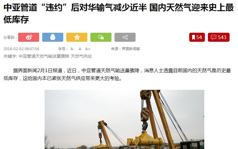 最后,还有中亚国家在天然气方面的“违约”问题。去年冬天中亚管道天然气输送量骤降,导致国内的天然气处于历史最低库存,给国内本已紧张天然气供应带来更大的考验。根据北京油气调控中心数据显示,国内的天然气资源缺口已经达到约3000万立方米/日。