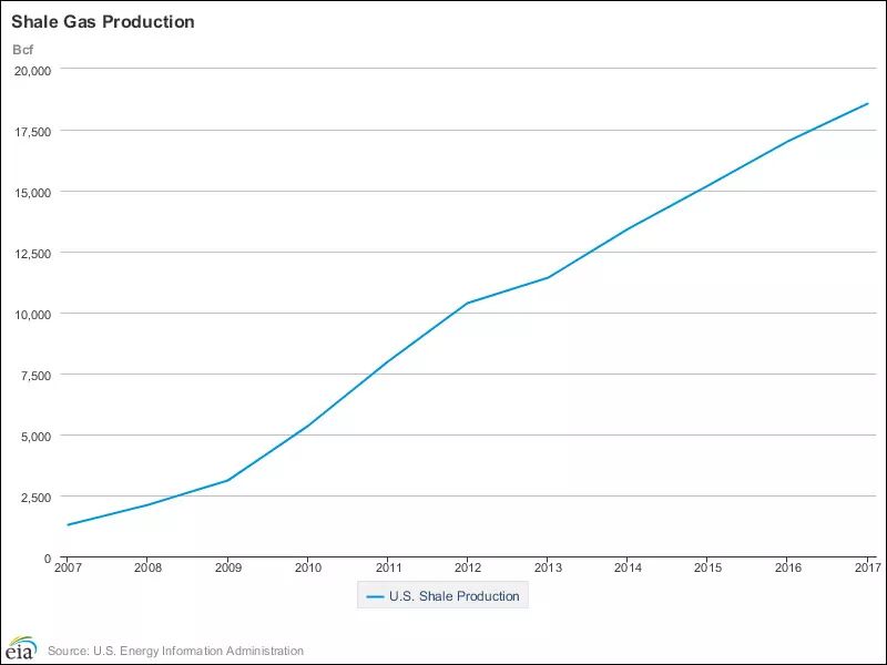 美国近年来页岩油产量 单位:十亿立方英尺 来源:美国能源资讯局