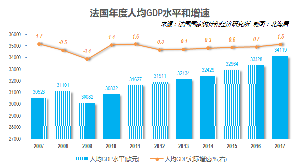 表面上看,法国GDP和人均GDP都在缓慢增长,GDP增长稍快于人均。但这组数字没有包括通货膨胀!法国的通货膨胀率在2.3%以上,这就意味着,实际人均GDP根本是负增长。如果剔除那些顶级富豪,这个数字还要更糟。根据法国市场调研机构益普索及民间救援组织的统计,有大约10%的法国人口限于极度贫困中,他们连一日三餐都无法保证。