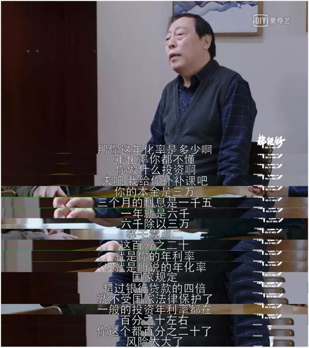 在前段时间热播的电视剧《都挺好》中,苏家舅舅想忽悠苏大强和他一起投资,反而被之前有过受骗经历的苏大强科普,“国家规定,(年利率)超过银行贷款的四倍,就不受国家法律保护了。”(国家最新规定为受法律保护的民间借贷利率是年利率24%)