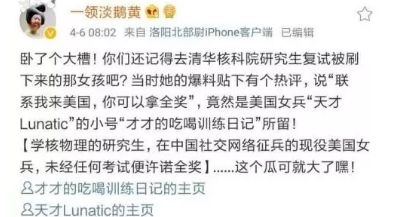 根据某网友爆料,高天才曾用小号在中国的网络上“拉拢”清华核科院的研究生,希望她能来美国工作,并许诺可以拿全奖。