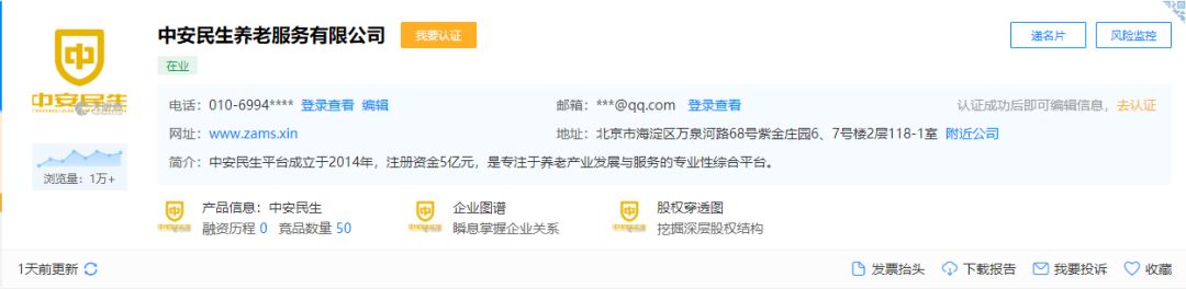 天上掉下一个大馅饼,换谁都会起疑心。小李说,您别担心,我们是正规公司,叫做中安民生养老服务有限公司,与中国老龄事业发展基金会有合作,在全国都有布局,不相信可以查。你让儿子在网上查了一下,呵,还真的挺大的,注册资本5个亿。