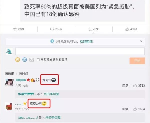 4月9日,「中国确诊18例超级真菌感染」的新闻登上微博热搜,微信朋友圈也有人纷纷转载该新闻,引起一阵恐慌。