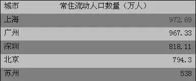 比如我们可以对比主要城市流动人口数量和经济总量的关系。2018年,流动人口数量排在前五位的城市,分别是上海、广州、深圳、北京、苏州。四大一线城市都超过了700万,相应的它们也是经济最发达的四座城市,苏州GDP也可以排到第七位。