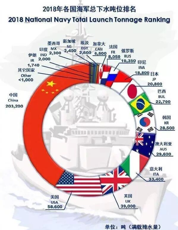 从2009年到2019年十年,中国海军的主力军舰数量从30艘暴增到127艘(不包括潜艇、辅助舰船)。2018年,舰艇下水的总吨位排名全球第一。