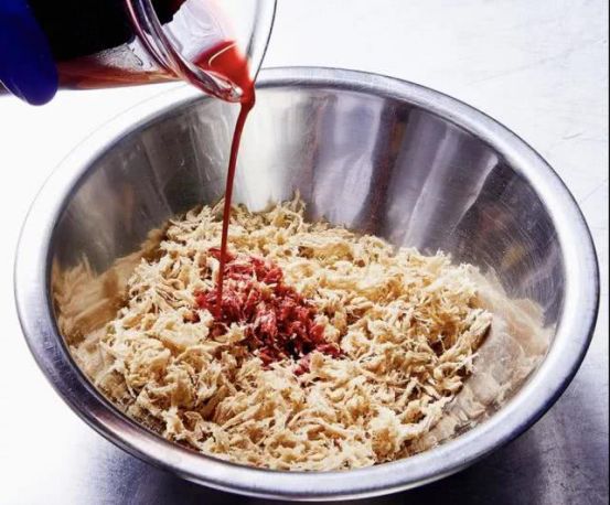第四步:在肌肉纤维中加入脂肪细胞和其他细胞,制成肉饼