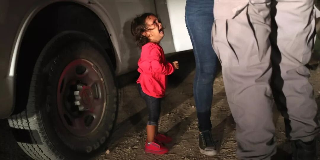 被海关逮捕的洪都拉斯偷渡者和她2岁的女儿