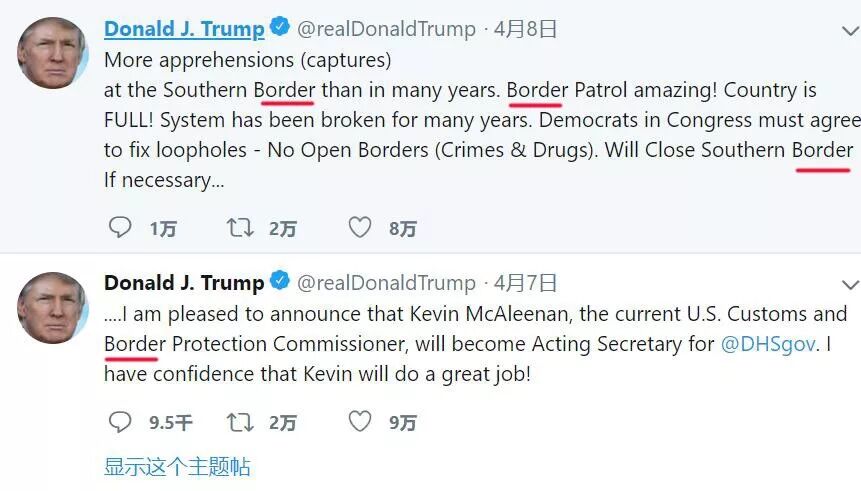 如果翻看特朗普的推特,会发现近日来,他提到最多的是“边境”(border)这个词。