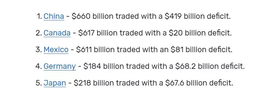 2018年美国贸易伙伴国排名