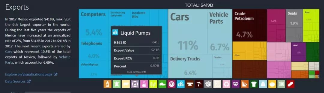 墨西哥生产了大量美日德法品牌的汽车,并出口原油、机械、零部件、农产品