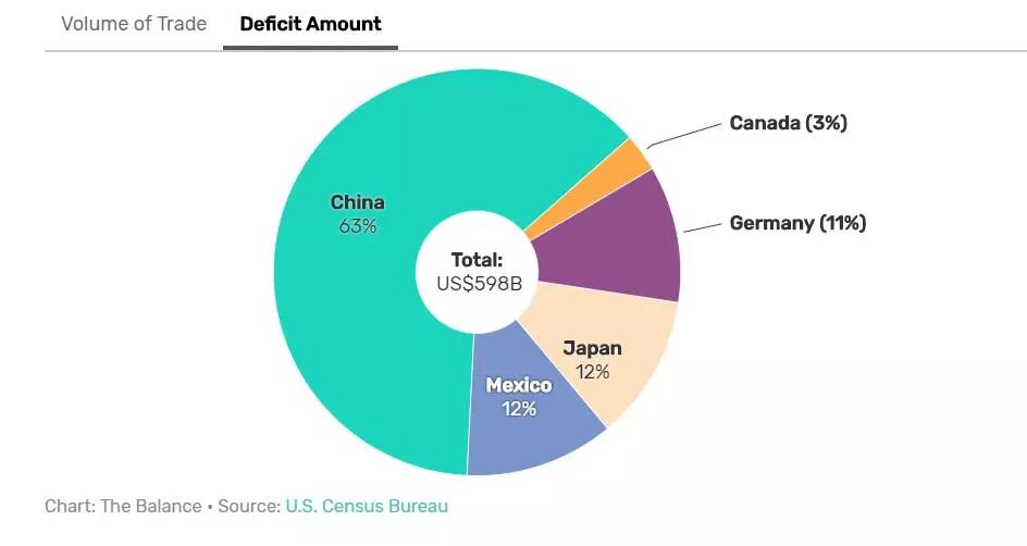 2017年美国贸易赤字的各国占比