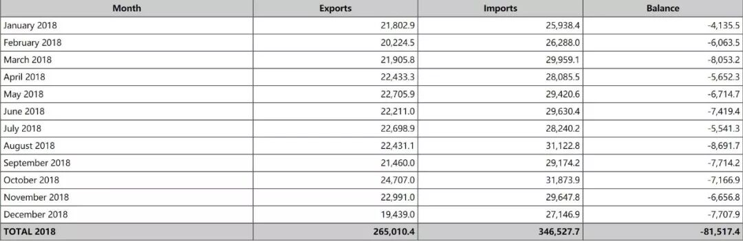 2018年对墨西哥贸易赤字达到了810亿美元的新高