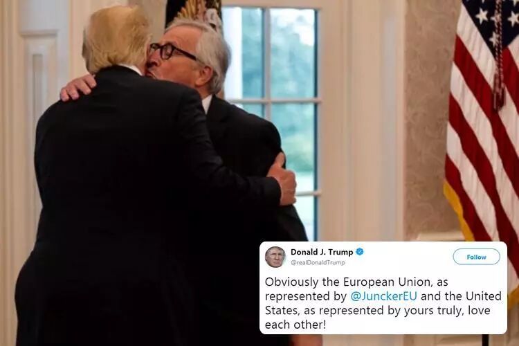 去年夏天特朗普还与欧盟委员会主席容克热情亲吻,现在可谓前功尽弃。