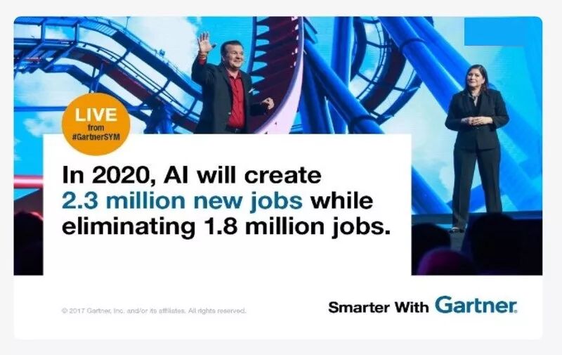 AI到2020年,将创造230万新就业。AI技术的发展,并不像人们所预料的那样,导致失业率上升