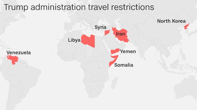 首先,是禁止了七个国家的公民(多数为穆斯林国家)入境美国。