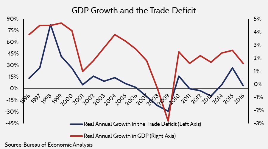 贸易赤字与GDP同升同降