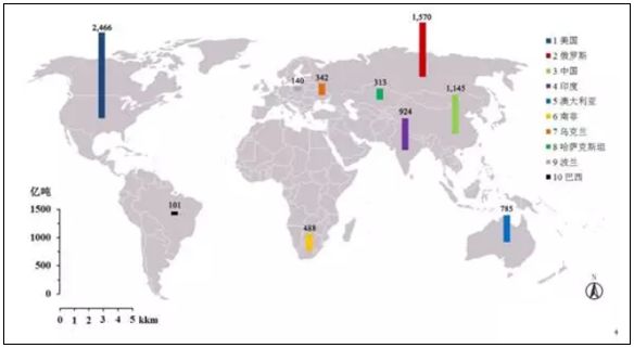 美国估计煤炭储量达到2466亿吨,占据世界总储量的27.6%,而中国仅为1343亿吨。