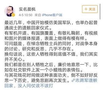 在他们口中,如今我们祭祀先烈,迁葬烈士遗骸的国家行为、民间行动,竟然被称为“廉价”、被归为“表面功夫”?
