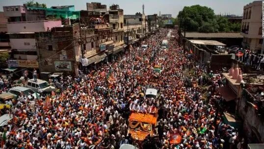 按照以往传统,大选期间整个印度都会充斥着一种说不清道不明的末世节日氛围,各种集会、宣讲、游行遍布整个印度;投票点乌烟瘴气,人声鼎沸;由于政见不合而大打出手,乃至群殴的事件也屡有发生;海量的政治宣传物、海报、张贴画不知道要多少环卫工人累断老腰……