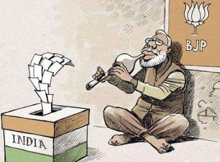 印度人民党的舆论机器疯狂的宣传莫迪低种姓的出身和他在古吉拉特邦的政绩,竭尽所能的将他描绘成印度的大圣人、实干家、改革家,同时也渲染地缘、宗教、种族矛盾,宣称只有自己才能结束印度的各种乱象。