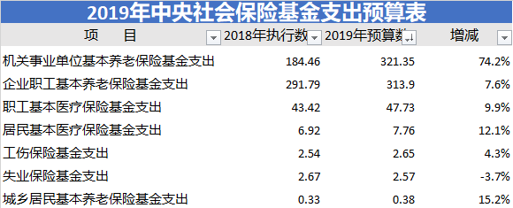 2019年中央社会保险基金支出5509.94亿,增长了87.4%,钱主要花在了机关事业单位和企业职工的基本养老保险上。