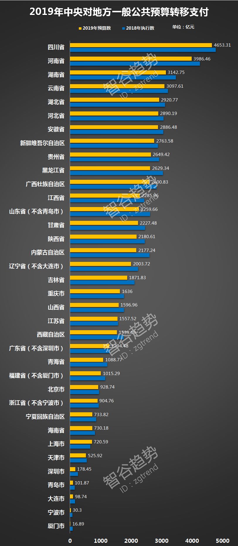 再来看今年各省市从中央一般公共预算中拿到多少钱?