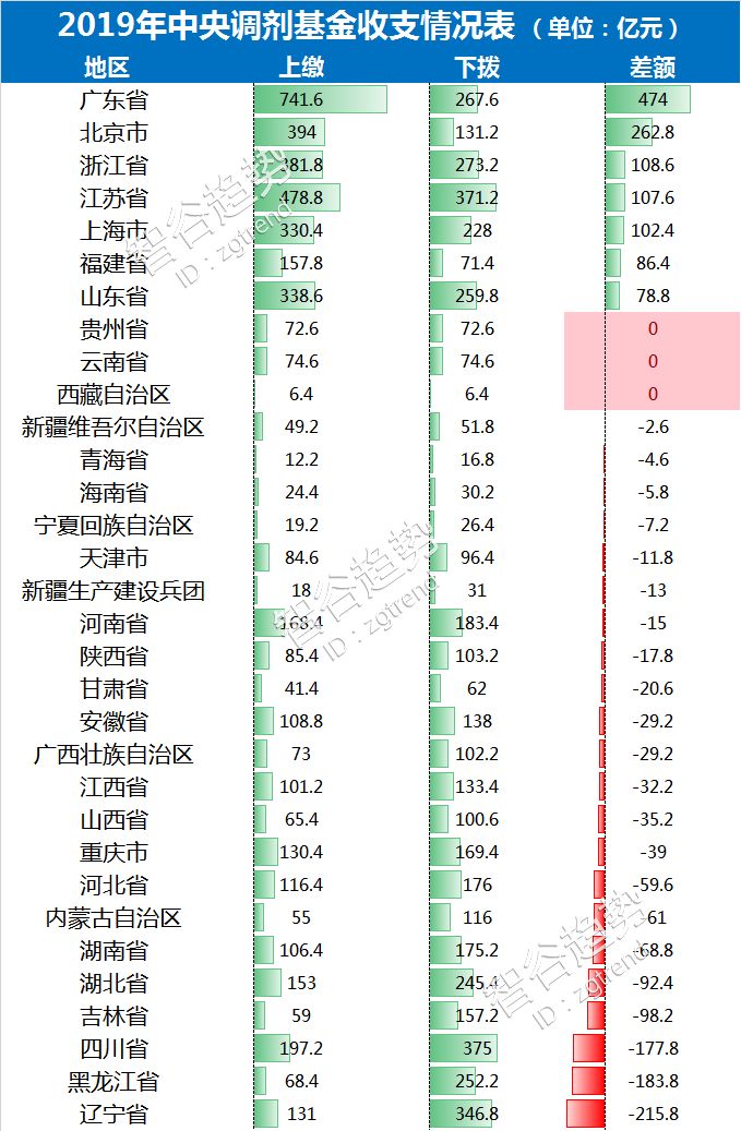 2019年中央调剂基金预算规模4844.6亿元,这也是各地上缴的资金,中央现在要将这4844.6亿元全部分给地方,谁分得最多,似乎答案没有悬念——辽宁、黑龙江、四川。