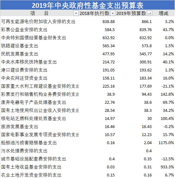 当然,如果实在看不过来,也可以选自己最有兴趣的。中央大账本是由四本帐构成的,分别为:中央一般公共预算支出、中央政府性基金支出、中央国有资本经营支出、以及中央社会保险基金支出。它们相互独立,互不影响。