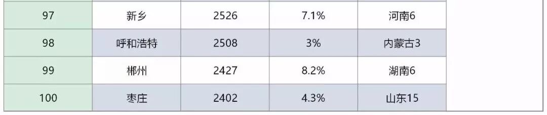 城市的头部化趋势难以阻挡。在2018年中国大陆城市GDP排行榜中,头部城市北上广深均在20000亿以上,而排名在97名-100名的城市:新乡、呼和浩特、郴州、枣庄等四个城市的GDP加起来才9863亿,低调的广东第三城佛山的数据为10550亿,超过四个城市之和。
