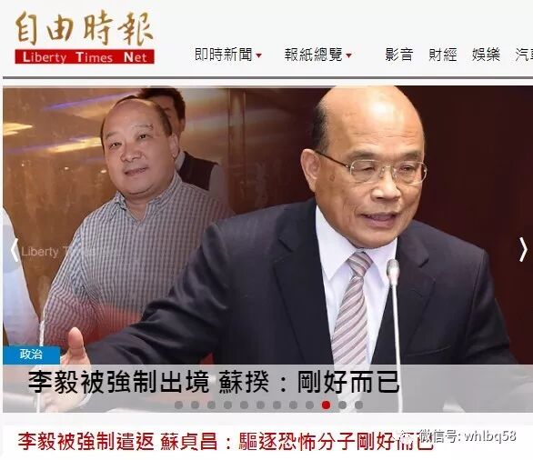 【台湾《自由时报》头版报道的标题截图】