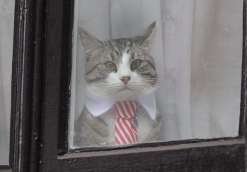 期间他收养过一只猫,不过去年9月,猫就被阿桑奇的朋友带走了。