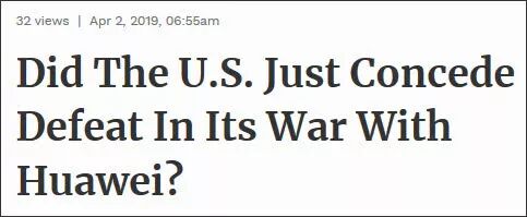 这是《福布斯》杂志网站4月2日的标题:“美国承认与华为的战争失败了吗?”