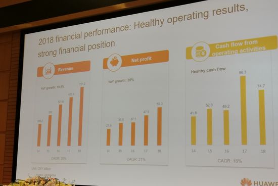 2018年华为全球销售收入7212亿元人民币,同比增长了19.5%,净利润593亿元,同比增长25.1%。