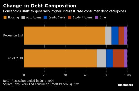 过去10年,总体而言,家庭债务构成已从住房抵押贷款——作为整体债务组合中的主要项目——转向融资成本更高的信贷。